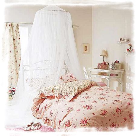 粉色花朵圖案床品+白色紗床幔+花朵窗簾 小資女人的浪漫香閨體現(xiàn)得淋漓盡致。