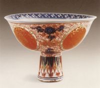 說(shuō) 明: 明代的五彩器沒有釉上藍(lán)彩,都以釉下青花代替,而該碗的五彩裝飾,色彩濃郁,具有強(qiáng)烈的視覺效果,而此種被稱為金欄手的裝飾技法,對(duì)日本瓷器的裝飾風(fēng)格有著較深的影響.