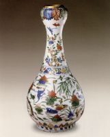 圖片名稱: 五彩鷺蓮紋蒜頭口瓶