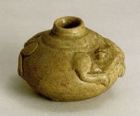 說(shuō) 明: 這件水注年代較早,釉色淡青雅致,滋潤(rùn)晶瑩.造型別致,蛙形生動(dòng).是越窯早期青瓷中的精品.