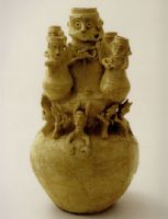 說(shuō) 明: 五聯(lián)罐起源于東漢中期前后,在明器中具有五谷豐登之意.此種以人物造型為五管的產(chǎn)品,實(shí)屬罕見(jiàn).