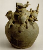 說 明: 在五聯(lián)堆塑罐上出現(xiàn)人物形象,這是最早的一例實(shí)物.