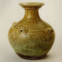 說 明: 施青釉略閃醬黃色.胎質(zhì)細(xì)密,釉色柔和,紋飾古樸,造型規(guī)整.