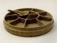 說 明: 此器又稱"隔盤"或"多子盒".三國、西晉時均作長方形,東晉后逐漸為圓形隔所代替.