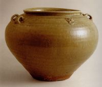 說 明: 器型高大.肩部兩側(cè)各有一對復(fù)系,前后各貼一個鋪首.并模印上下兩組聯(lián)珠紋.