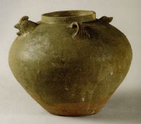 說 明: 此器施淡青釉,釉質(zhì)勻凈,腹下露胎呈紅土色.形態(tài)生動(dòng),栩栩如生.系西晉時(shí)期典型器之一.