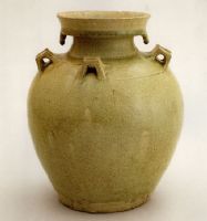 說(shuō) 明: 施青釉,略呈黃綠色,開(kāi)冰裂碎片.造型規(guī)整穩(wěn)重,是南朝青瓷中的標(biāo)準(zhǔn)器.