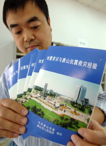 5月18日,一名工作人員在唐山市委機關(guān)印刷廠展示“地震常識與唐山抗震救災(zāi)經(jīng)驗”宣傳冊。汶川地震發(fā)生后,河北省唐山市地震局和檔案局組織有關(guān)專家緊急編印了三萬冊抗震救災(zāi)手冊,匯集了唐山地震中救災(zāi)和重建的經(jīng)驗和教訓(xùn),希望為四川災(zāi)區(qū)抗震救災(zāi)、重建家園提供參考和借鑒。