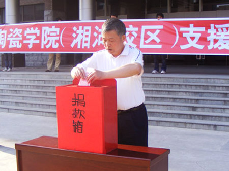在捐款儀式上,黨委書(shū)記肖任賢作了愛(ài)心捐款動(dòng)員講話。他在講話中指出,四川汶川地震災(zāi)難深深地牽動(dòng)著陶院全體師生的心。災(zāi)情發(fā)生后,陶院師生都深為悲痛,時(shí)刻關(guān)注地震災(zāi)情。學(xué)校專門召開(kāi)黨委會(huì),研究布署向汶川地震災(zāi)區(qū)捐款獻(xiàn)愛(ài)心工作,工會(huì)、團(tuán)委、學(xué)生會(huì)等群團(tuán)組織和全校各單位也立即行動(dòng)起來(lái),及時(shí)了解陶院來(lái)自災(zāi)區(qū)師生的家庭受災(zāi)情況,并倡導(dǎo)全校師生通過(guò)各種方式向受災(zāi)地區(qū)獻(xiàn)愛(ài)心。要大力發(fā)揚(yáng)一方有難、八方支援的民族精神,全力支援和幫助受災(zāi)地區(qū)。全體師生要積極行動(dòng)起來(lái),積極參與這次愛(ài)心捐助活動(dòng),為災(zāi)區(qū)群眾排憂解難,共獻(xiàn)一片愛(ài)心,送上一份溫暖,踴躍捐款捐物,用實(shí)際行動(dòng),幫助受災(zāi)群眾恢復(fù)生產(chǎn),重建家園。全校各級(jí)黨團(tuán)組織和工會(huì)組織,要認(rèn)真組織好這次抗震救災(zāi)愛(ài)心捐款活動(dòng),確保每一位老師和同學(xué)的愛(ài)心都能得到及時(shí)表達(dá)。