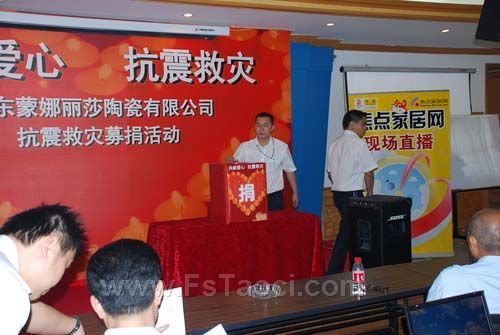“我們的心跟災(zāi)區(qū)人民是連在一起的,董事會(huì)決定,蒙娜麗莎陶瓷有限公司將向?yàn)?zāi)區(qū)捐款100萬,支援災(zāi)區(qū)人民。”5月16日,在蒙娜麗莎陶瓷有限公司抗震救災(zāi)活動(dòng)現(xiàn)場(chǎng),蒙娜麗莎董事長(zhǎng)兼總裁蕭華熱淚盈眶,用顫抖的聲音向在座的員工宣布了這一決定,得到了在場(chǎng)員工的熱烈響應(yīng)。