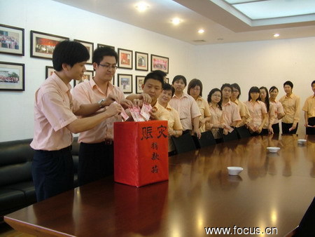 5月13日,英皇衛(wèi)浴公司董事總經(jīng)理梁慧枝女士得知四川的災(zāi)情之后,發(fā)動(dòng)全體員工掀起了一場(chǎng)“賑災(zāi)捐款支援四川同胞”的募捐活動(dòng),并帶頭募捐了5000元。在梁慧枝女士的帶領(lǐng)下,英皇衛(wèi)浴公司總部的員工紛紛慷慨解囊,截至15日中午,英皇衛(wèi)浴員工的捐款金額已經(jīng)達(dá)到3萬(wàn)元。
