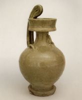 說 明: 全器施青釉,把手已簡化,無龍頭作飾.