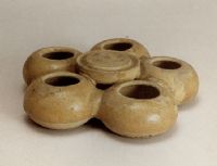 說 明: 此器中間增加盤形硯,其功能與文房用具相關(guān).造型精巧,并非實用,為隨葬的明器.