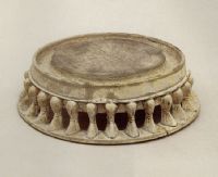說 明: 這種硯主要流行于南朝至唐宋時期,是古硯的一種重要形制,以其圓形而周邊環(huán)水如辟雍,故名辟雍硯.