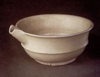 說 明: 釉光潤晶瑩,釉色白中閃米黃色,布滿細碎開片紋,是唐代精細白瓷的代表作品.