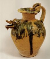 說 明: 此壺造型生動別致,為我國中晚唐北方窯生產(chǎn)的三彩精品.