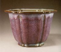 說 明: 此盆造型優(yōu)美,釉色絢爛,是鈞瓷中的精品.