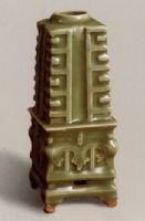 說 明: 瓶分上小下大兩段,上部仿玉琮形式。下作方形座。