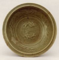 圖片名稱: 龍泉窯青釉貼花雙魚紋折沿盤