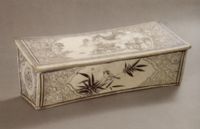 圖片名稱: 磁州窯白地黑花開光山水圖枕
