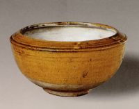 說 明: 因胎土粗糙,故施黃釉之前現(xiàn)勢一層潔白化妝土。為壁施黃釉不到底。