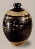說 明: 胎呈灰白色,施黑釉不到底,器型渾圓。