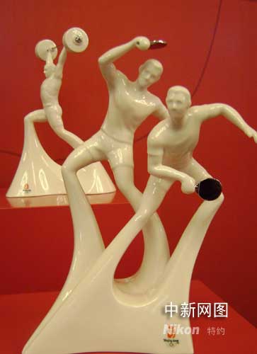 圖為法藍瓷創(chuàng)造的2008北京奧運運動員擺飾藝品,以純白陶瓷面貌呈現(xiàn)。作 者:應(yīng)妮