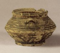 說(shuō) 明: 原始青瓷。器表施青綠色釉。釉厚薄不勻,但釉面晶亮。