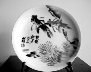 陳葆棣先生數(shù)度到景德鎮(zhèn),沉醉于工坊之中,將自己的才情傾瀉于高雅素潔的景瓷坯胎,陳葆棣并不像其他書畫藝術(shù)家對景瓷僅僅是客串而已,他在景瓷上嘗試多種藝術(shù)方式,構(gòu)圖、筆意、色彩都與景瓷的特性相協(xié)調(diào),漸漸開創(chuàng)出景瓷的一派新天地。