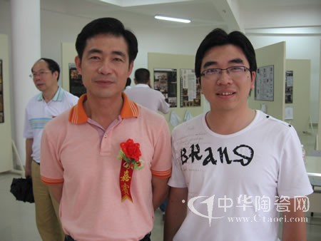 中國(guó)工藝美術(shù)大師蘇清河(左)、中華陶瓷網(wǎng)副總經(jīng)理蘇世偉(右)合影