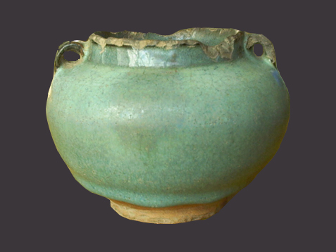 罐內(nèi)外釉面上共裝飾有17塊窯變斑彩,窯變斑色澤絢麗,大體有三種色調(diào);中心為蔥綠色,外層為朱紅色,最外層為葡萄紫或玫瑰紅色。基礎(chǔ)釉的天青色和窯變斑的紅、綠、紫色交相輝映,五彩斑斕,炫人眼目,堪與宋鈞相媲美。金代鈞瓷中的碗、盤的造型基本上也是沿用宋制,器形逐漸變大。