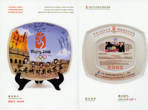 國瓷是中國政府專門贈送外國元首及來華使節(jié)的珍品,古今中外歷來受收藏者的追捧。經(jīng)第二十九屆奧林匹克運動會組織委員會審批,由景德鎮(zhèn)世寶藏品瓷研制中心、工藝美術(shù)總監(jiān)李世保大師設(shè)計承制2008年奧運會特許珍藏紀(jì)念“國瓷”瓷盤,圖案中外題材合一,奧運主題鮮明,內(nèi)涵深遠(yuǎn),力透中國之神韻!