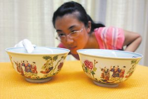 “該碗為乾隆官窯琺瑯彩難得之上上佳品。”昨天,重慶市收藏協(xié)會會長王雍剛介紹,琺瑯彩瓷是極名貴的宮廷御用瓷,它先是在景德鎮(zhèn)高溫燒成白瓷,然后送入清宮內(nèi)務府入彩,琺瑯彩所用的材料均為進口料“瓷胎畫琺瑯”,耗時耗料耗工,燒制工藝復雜。該琺瑯彩嬰戲雞圖紋碗選料清純,胎質(zhì)堅硬潔白,畫工精湛,碗內(nèi)用珊瑚紅點染五福捧壽,碗外所繪花卉、嬰童、雄雞無不栩栩如生。按照兩個碗500克重量,每克要折合5萬元。