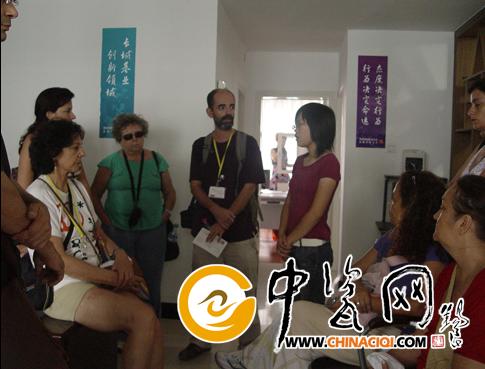懿姬公司董事長侯懿鎂、知識總監(jiān)朱蕾、長城創(chuàng)域集團(tuán)總裁助理張建和所有設(shè)計(jì)師陪同外國陶藝家參觀了懿姬公司的展廳和工廠。