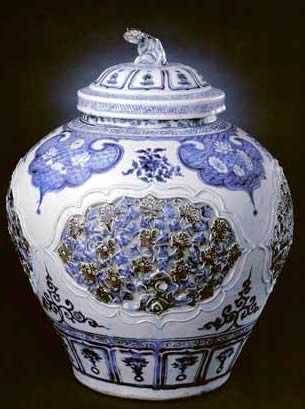 青花釉里紅瓷器創(chuàng)燒于元代。青花的呈色劑是氧化鈷,呈色穩(wěn)定;釉里紅的呈色劑是氧化銅,極易揮發(fā),對(duì)窯室的燒成氣氛要求十分嚴(yán)格。元代景德鎮(zhèn)工匠創(chuàng)造性地將二者珠聯(lián)璧合地施于同一器物上。這一新的釉下彩品種的出現(xiàn),是元代瓷器生產(chǎn)技術(shù)進(jìn)步的重要標(biāo)志。
