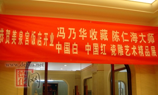經(jīng)2008奧林匹克美術(shù)大會(huì)組委會(huì)推薦邀請(qǐng),2008年7月26日,中國(guó)白藝術(shù)宮投資鑒藏專(zhuān)家委員會(huì)會(huì)長(zhǎng)馮乃華先生收藏陳仁海大師中國(guó)白、中國(guó)紅瓷雕藝術(shù)精品展在奧美大會(huì)中外藝術(shù)家駐地北京美泉宮飯店正式開(kāi)業(yè)中展出。