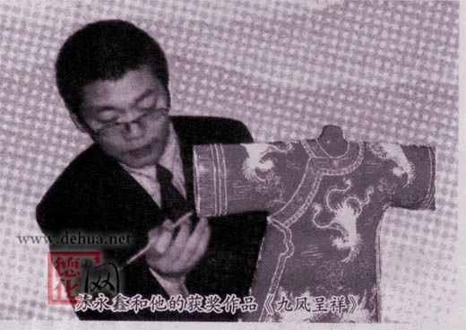 蘇永鑫是福建德化人,1972年出生。他從小就對書畫、雕塑感興趣,16歲師從福建省高級工藝美術(shù)大師邱雙炯,開始陶瓷學(xué)藝生涯。獨(dú)立的思想和高度的熱忱,使他盯準(zhǔn)漆線雕工藝。從學(xué)徒到技師,他立志把德化陶瓷藝術(shù)推向一個(gè)新的高峰。他獨(dú)自一人來到漆線雕的產(chǎn)地廈門闖蕩,師從臺(tái)灣知名工藝師專攻漆藝。以他自己年輕時(shí)精通的雕塑技藝融入漆線雕的精雕細(xì)琢的同時(shí),又不辭辛苦奔波于閩南各地,挖掘、繼承漆線雕這一優(yōu)秀的民族文化的藝術(shù)奇葩,拓寬了創(chuàng)作領(lǐng)域的空問,終于結(jié)出了累累碩果。其開創(chuàng)的新藝術(shù)品種曾被國內(nèi)多家知名禮品公司作為參賽作品在全國美術(shù)大賽中獲獎(jiǎng),并作為國賓禮品饋贈(zèng)外國友人。