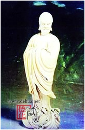 福建德化窯雕塑,以其著意刻畫塑像的內(nèi)涵而著稱。在德化的雕像中,被人熟知的是這尊帶有何朝宗背款的渡海達(dá)摩立像(見(jiàn)圖)。