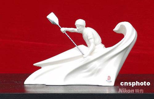 2008年4月,在江西省景德鎮(zhèn)市,一套名為“運動項目陶瓷擺件”的環(huán)保型奧運特許瓷亮相。該作品保持環(huán)保不加骨粉,以技術(shù)達(dá)到與骨瓷同樣的通透效果。這套奧運特許瓷投資近300萬美元開發(fā)而成,成品造型優(yōu)美,全套共29件,售價高達(dá)25萬元。作者: 石衛(wèi)明