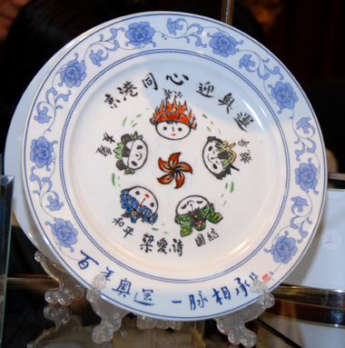 由本報(bào)與北京朝陽(yáng)區(qū)人文奧運(yùn)建設(shè)指揮部及香港學(xué)友社共同主辦的香港特區(qū)奧運(yùn)瓷盤彩繪暨展覽活動(dòng),以中國(guó)的代表陶瓷工藝(china)來(lái)表達(dá)社會(huì)各界對(duì)2008年北京奧運(yùn)會(huì)的寄語(yǔ)。10余名社會(huì)人士及60多名中小學(xué)生現(xiàn)場(chǎng)進(jìn)行瓷盤彩繪,前來(lái)參加活動(dòng)的有白發(fā)蒼蒼的老者,有蹣跚學(xué)步的幼童,也還有身坐輪椅的殘障人士,也不乏一家三代全體出動(dòng)。