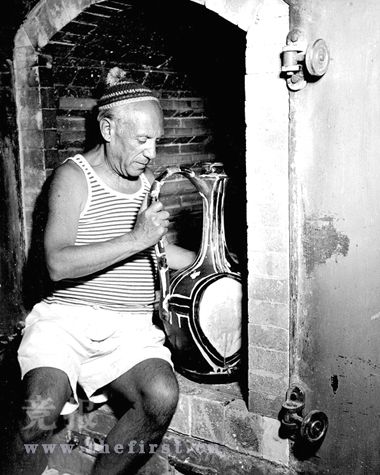 帶他入門的朋友說:“步入陶藝有點像開始遵循一門宗教信仰的教義那樣:要有信念,要傾情投入,要有純凈的心靈、單純的條件和目的,持之以恒的精神。”在這個基礎(chǔ)上畢加索陶藝作品萌芽了,他在這里找到未曾發(fā)掘的創(chuàng)作空間,他不僅要打破作品獨一無二的常規(guī),還要沖破那些對熔爐藝術(shù)品的美學(xué)束縛。畢加 索 在。’Hospied。澹睢。剩铮欤妫澹剩酰幔罨瘜W(xué)工廠負(fù)責(zé)人高克斯先生的幫助下,使用鈷藍(lán)色、銅綠色、紫羅蘭色和品種繁多的琺瑯,還在釉底料和影線方面用新方法裝點杯子、盤子和地磚。同樣,他創(chuàng)造了新的雕刻、繪畫方式。除了用車床加工罐子,他對切割以及在坯泥上直接造型產(chǎn)生興趣。通過杯子、雙耳杯、細(xì)頸小底瓶和瓦罐,為二十世紀(jì)后半葉的藝術(shù)世界打開了一扇交流之窗。