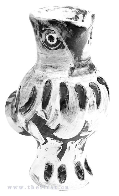 后期作品:從1960年到1970年,畢加索的陶藝創(chuàng)作進(jìn)入第三個階段。他已經(jīng)不單純地制造傳統(tǒng)陶藝作品,而是進(jìn)行大膽的創(chuàng)新,使其看上去已經(jīng)像一件全新的雕塑作品。融合了很多新元素在其中。最典型的就是這次展覽中那些造型奇特的作品。例如,木頭的貓頭鷹。