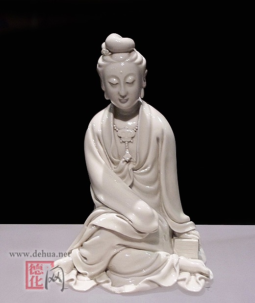 但最使我動(dòng)容的,是一尊佛像。是明朝瓷圣何朝宗的德化窯觀音。那流轉(zhuǎn)的光彩,似乎不應(yīng)是這世間之物。它是那么的婉轉(zhuǎn),柔和,卻又隱隱有一種氣勢,能直透你的心底。巧奪天工的確切含義,我現(xiàn)在才真正明白。