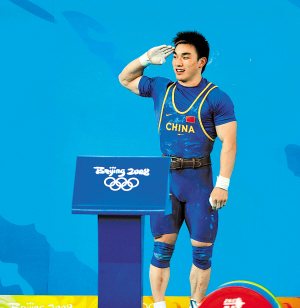 廖輝軍銜沒陳燮霞高,不過在奧運(yùn)會成績上,現(xiàn)在能和她“平起平坐”了。這個21歲的湖北伢今晚(8月12日)一舉奪得北京奧運(yùn)會男子舉重69公斤級比賽金牌。當(dāng)他在領(lǐng)獎臺上敬了一個帥氣的軍禮,全場觀眾報以熱烈的掌聲。