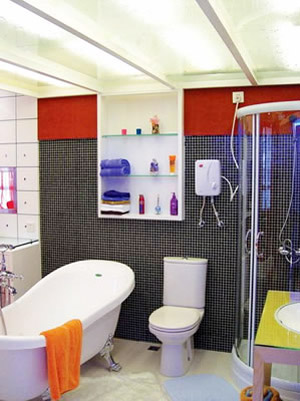 黑色的衛(wèi)浴墻配搭白色的浴缸。