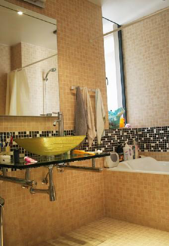 與喜歡細膩風格的人相對,喜歡色彩艷麗大圖案的人也有了個性化的選擇,用大面積花片代替腰線,除了花色的沖擊力更為強烈以外,不同的拼裝方式也能讓人眼前一亮?筛鶕(jù)使用者的喜好,選擇不同瓷磚,做出藝術(shù)的排列組合,創(chuàng)造出個性化的設(shè)計。