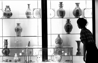 參觀者對(duì)仿制的清宮名瓷表現(xiàn)出極大的興趣。昨天,“天下吉祥”大清國(guó)寶名瓷展在中華世紀(jì)壇舉行。這次展覽首次匯集了康乾盛世時(shí)期的十二種國(guó)寶,進(jìn)行原樣限量復(fù)制!