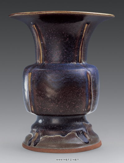 此紫紅釉出戟尊為日本伊豆高原美術(shù)館的珍藏品,高28厘米,口徑23厘米,底徑18厘米。尊的造型仿古代青銅器樣式,喇叭形口,扁鼓形腹,圈足外撇。頸﹑腹﹑足四面均貼條形方棱,俗稱“出戟”。日本全國博物館界最權(quán)威的機(jī)構(gòu)“日本博物館協(xié)會”在其主辦的《博物館研究》第32卷第11號(平成9年11月25日發(fā)行,既1997年)以此尊作為封面,并在目錄頁有這樣的說明:“封面:【紫紅釉尊 鈞窯】宋末元初時(shí)代 13世紀(jì) 高28cm 口徑23cm 底徑18cm 伊豆高原美術(shù)館”。在第40頁有專文介紹伊豆高原美術(shù)館,列舉了該館的經(jīng)典藏品,代表作品有“狩野探幽”﹑“花鳥人物屏風(fēng)”﹑“紅釉羊頭把手大瓶”﹑“鈞窯紫紅釉尊”等。1997年6月,在日本東京舉辦的“中國鈞窯珍品展”引起強(qiáng)烈轟動,日本伊豆高原美術(shù)館長對中如云先生這樣說:“中華民族的歷史悠久﹑文化燦爛,陶瓷藝術(shù)世界聞名,鈞瓷不僅屬于中國人民,也應(yīng)該為世界人民所擁有。” 傳世宋代鈞窯瓷器以各式花盆和花盆托最為多見,出戟尊較為少見,最為珍貴。上海博物館收藏一件宋代鈞窯月白釉出戟尊,臺北故宮博物院收藏有宋代鈞窯丁香紫釉出戟尊。