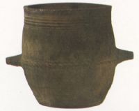 泥質(zhì)灰陶,輪制成型。直口,深腹,平底。腹外對(duì)裝二柄,便於使用。內(nèi)底戳印一“麇"字,當(dāng)是倉(cāng)麇用量。經(jīng)測(cè)試,可容小米兩萬(wàn)毫升,其容量與齊國(guó)一釜相當(dāng)。此器不論是屬春秋晚期或戰(zhàn)國(guó),都是中國(guó)早期量器的實(shí)物標(biāo)本。
