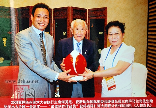 陳仁海“人和壽長”陶瓷作品禮贈薩馬蘭奇[圖/視]